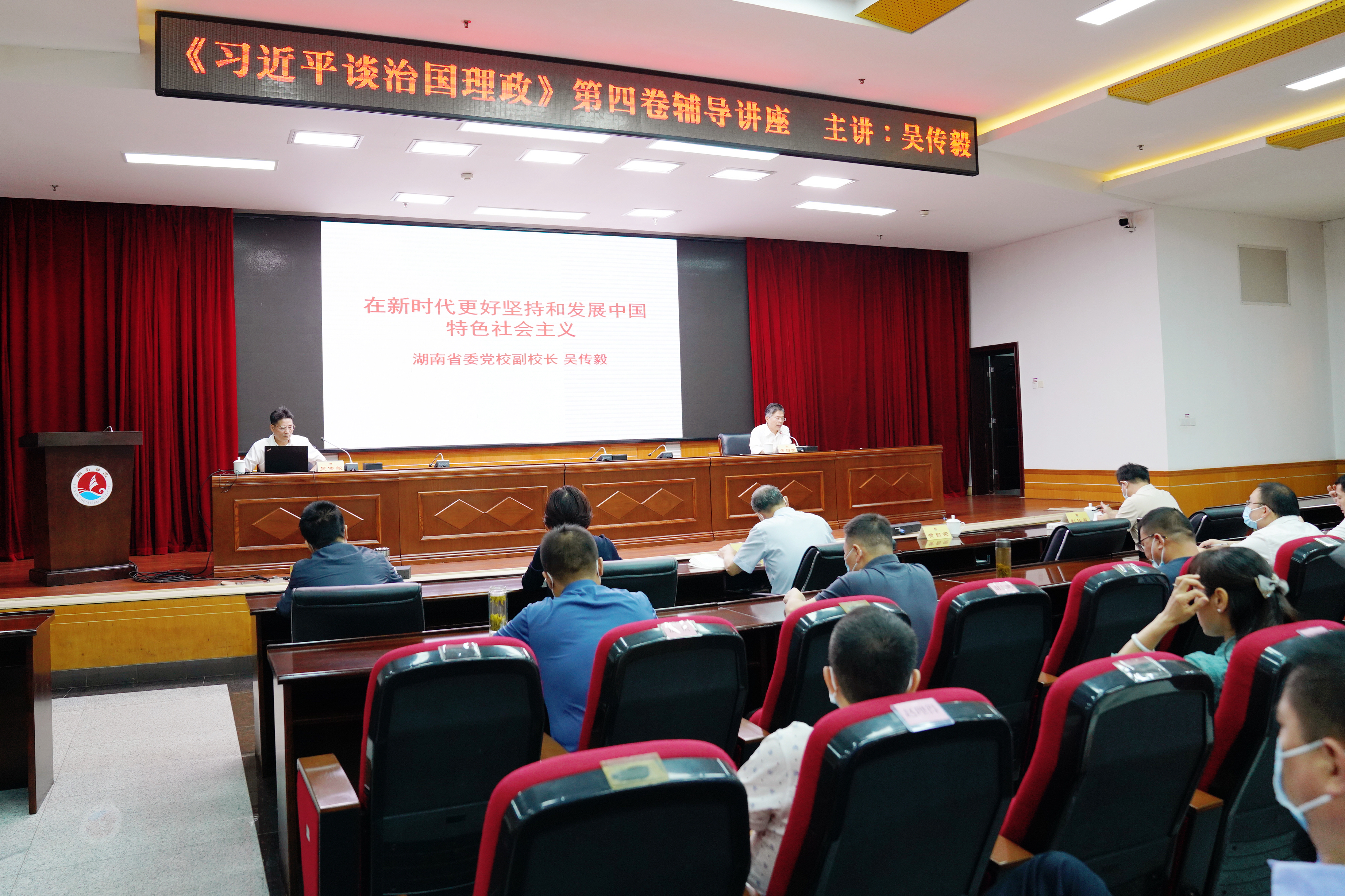 为进一步精读原著、深研原文、细悟原理,9月28日上午,我院邀请省委党校副校长吴传毅作《习近平谈治国理政(第四卷)》辅导授课,省委统战部副部长、省社会主义学院党组书记丁学新、省社会主义学院院长雷鸣强和其他院领导彭英、黄自荣、洪真健、彭仕敏出席。