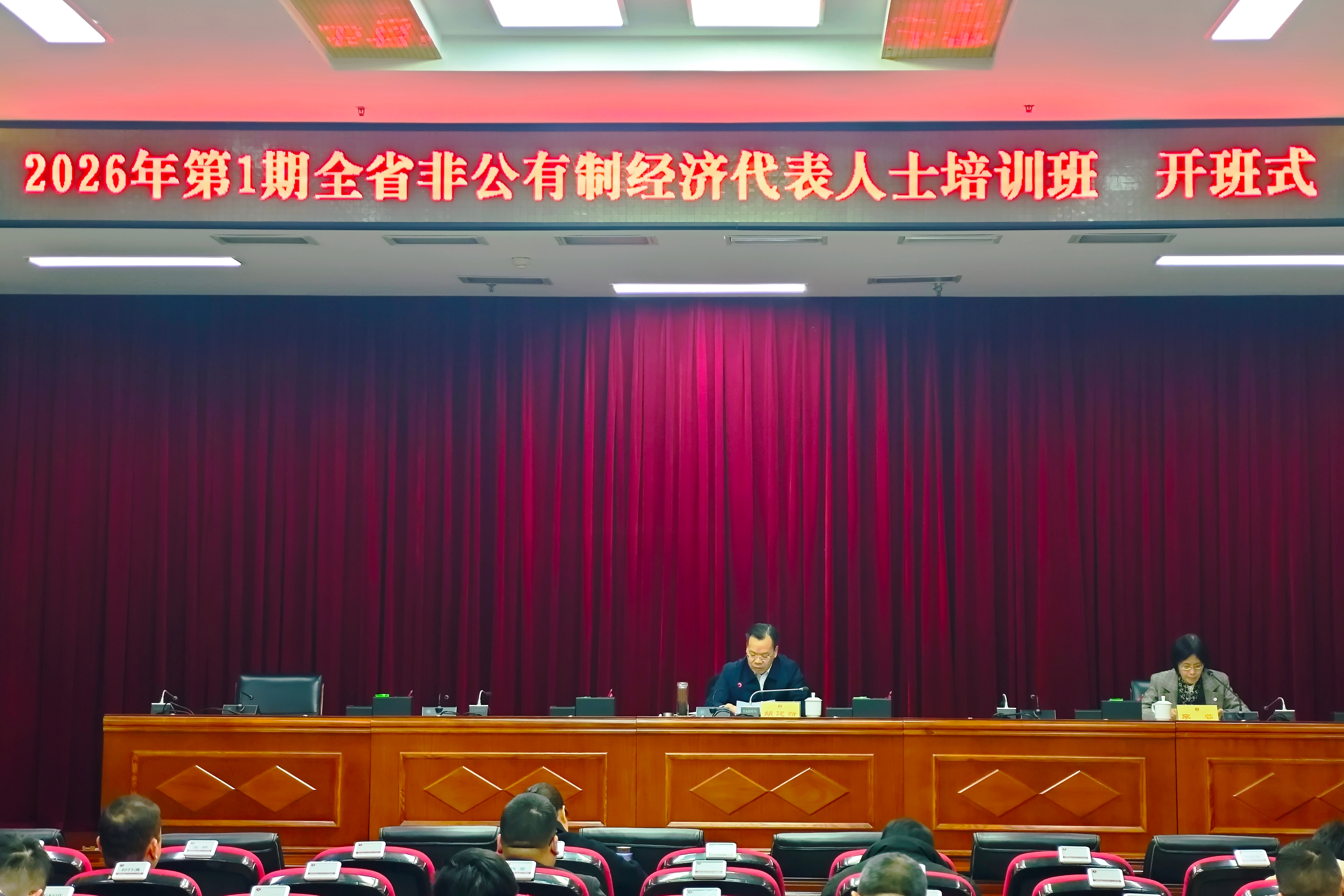 3月9日至12日,2026年第1期全省非公有制经济代表人士培训班在省社会主义学院成功举办,省委统战部副部长、省工商联党组书记胡建新出席开班式并讲话。省社会主义学院党组成员、副院长李蓉,省社会主义学院二级巡视员彭仕敏出席相关教学活动。