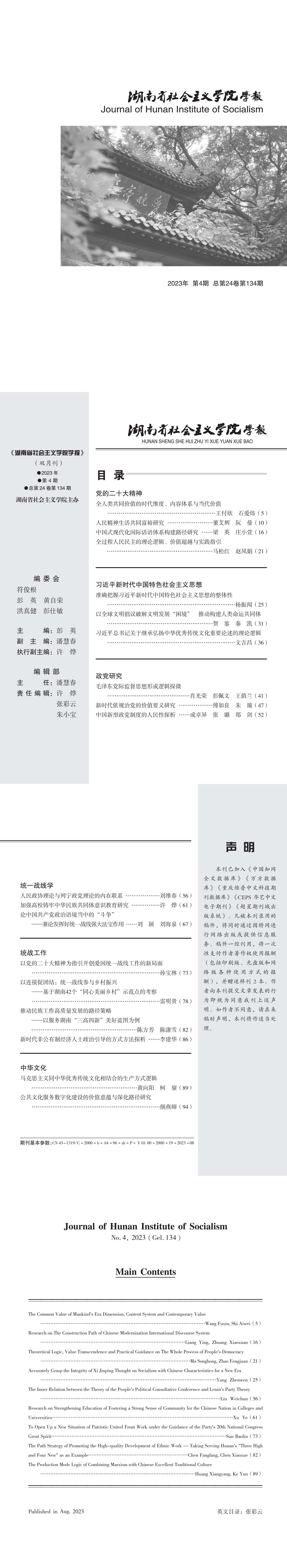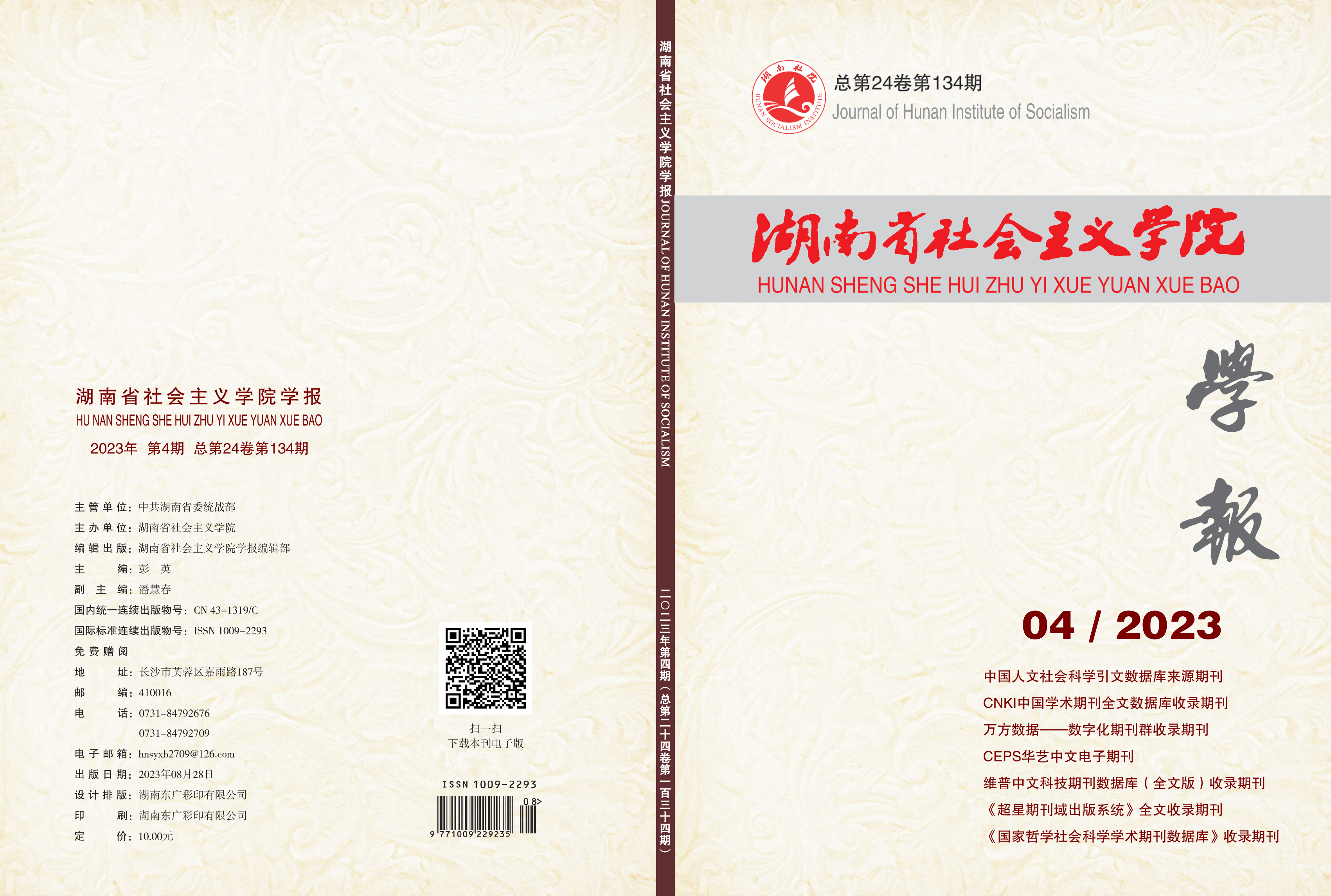 湖南社院学报2023年第4期封面及目录