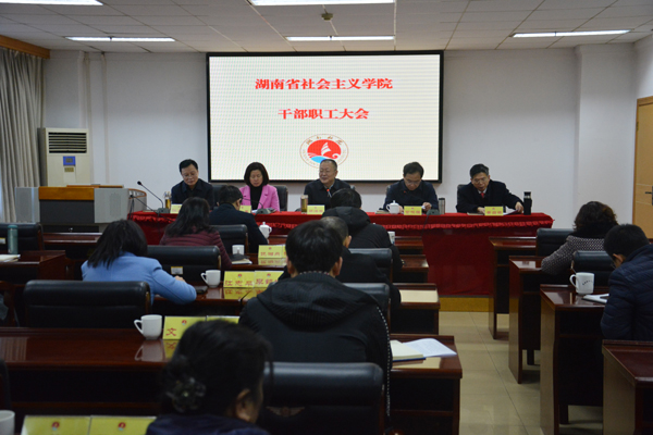 2月27日上午,省社会主义学院召开全院干部职工大会安排部署2019年工作,省委统战部副部长、省社院党组书记邓焕生主持,省社院院长、民进省委副主委雷鸣强作春季开学报告,要求抓机遇迎挑战,增动能上水平,奋力推进新时代社院各项工作的新发展。院领导彭英、黄自荣、洪真健、周述杰、彭仕敏及全院干部职工参加会议。