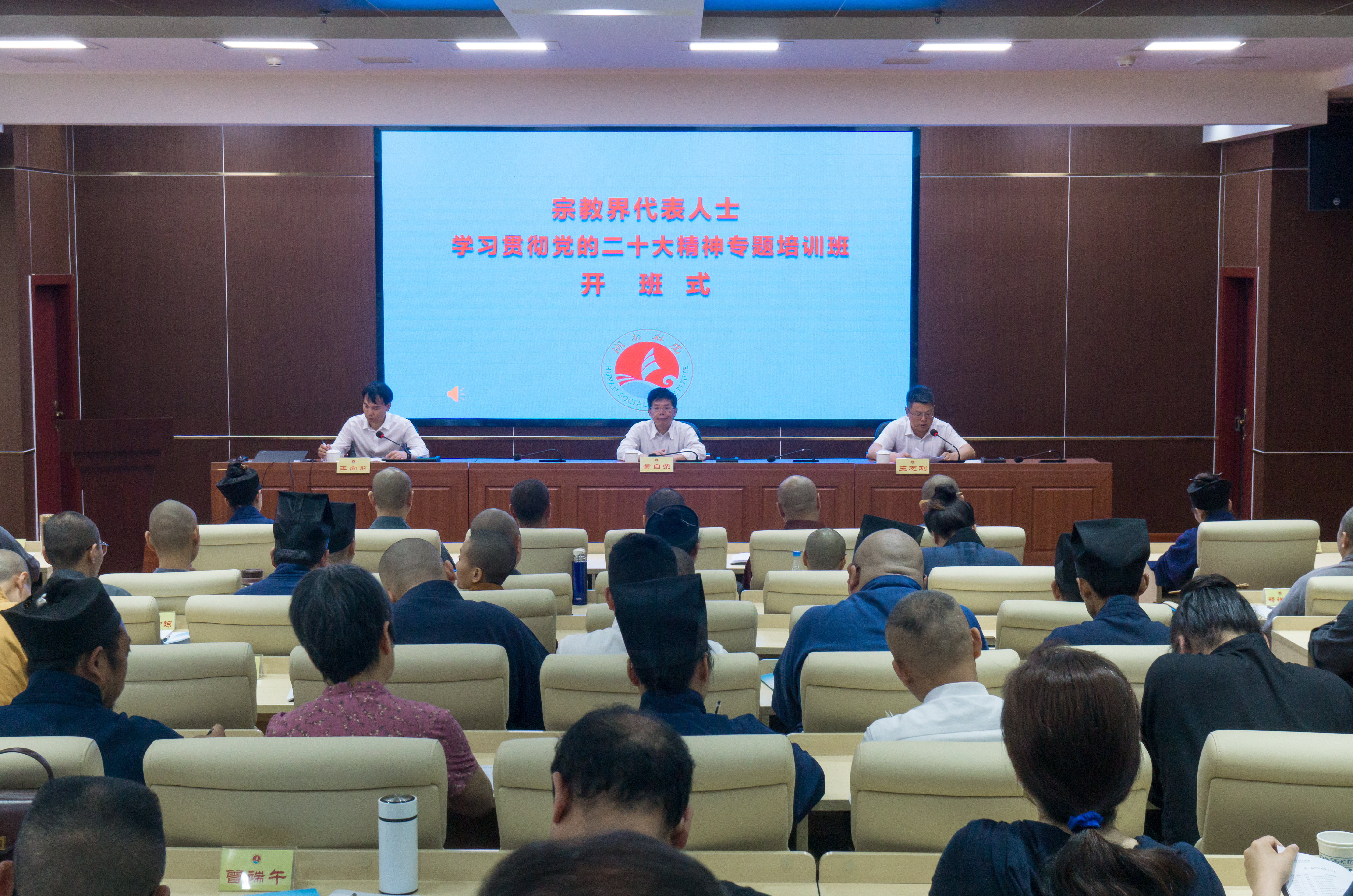 5月16上午,宗教界代表人士学习贯彻党的二十大精神专题培训班在省社会主义学院同心楼8楼阶梯教室开班。省社会主义学院副院长黄自荣,省委统战部民族宗教工作处处长王志刚出席开班式,省委统战部、省社会主义学院相关处室负责人、工作人员及培训班70名学员参加了开班式。